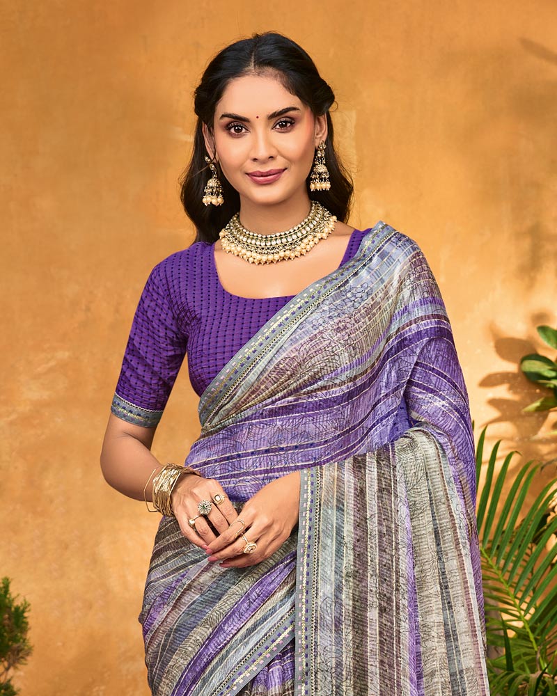 Vishal Prints Purple And Grey Printed Fancy Chiffon Saree With Fancy Border