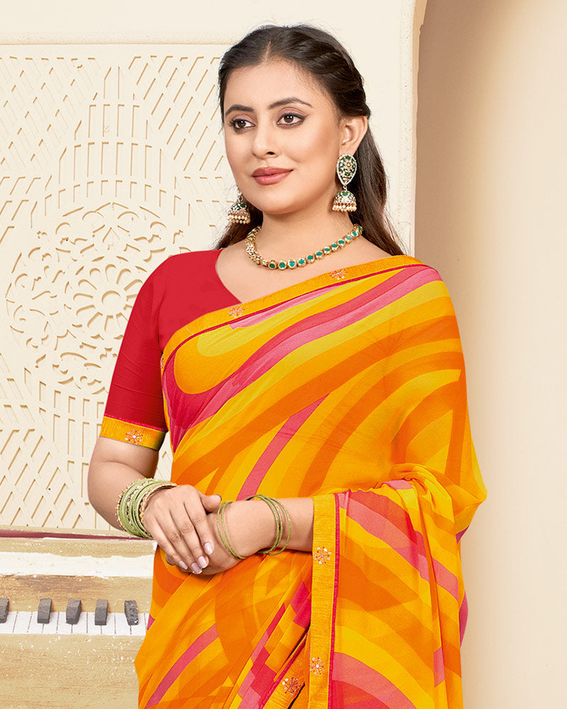 Vishal Prints Yellowish Orange Printed Georgette Saree With Fancy Border