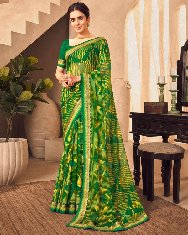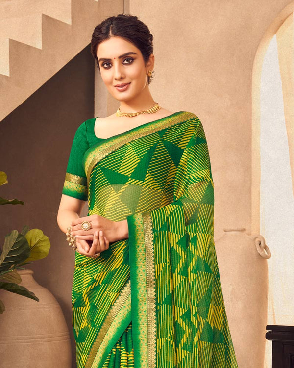 Vishal Prints Light Mehandi Green Printed Georgette Saree With Fancy Border