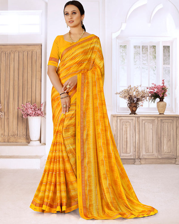 Vishal Prints Golden Yellow Printed Georgette Saree With Fancy Border