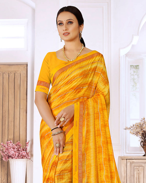 Vishal Prints Dark Yellow Printed Georgette Saree With Foil Print And Fancy Border