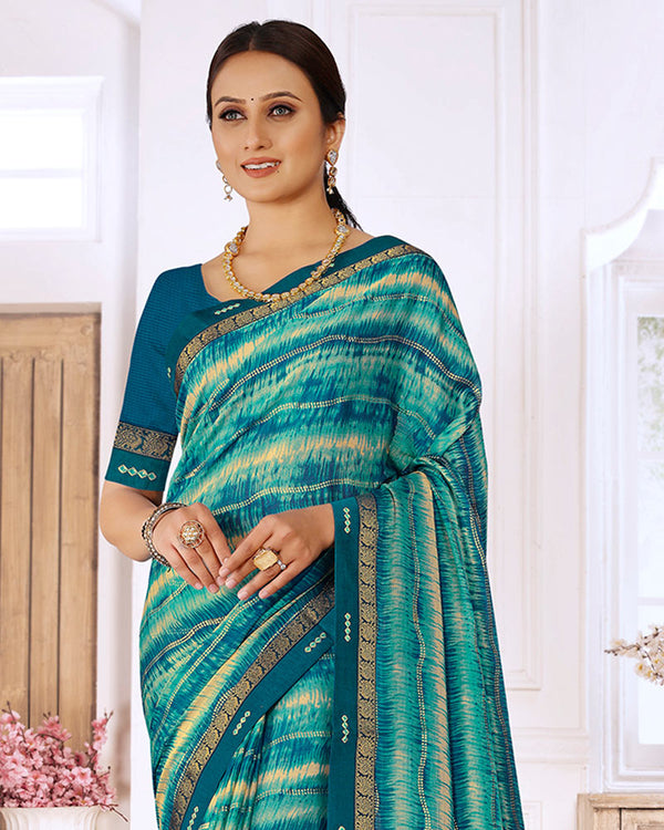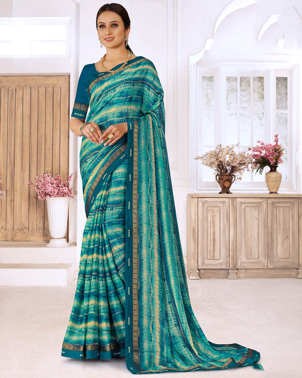 Vishal Prints Teal Green Printed Patterned Chiffon Saree With Foil Print And Fancy Border