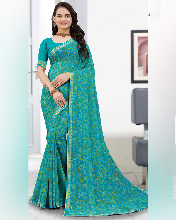Vishal Prints Turquoise Blue Printed Georgette Saree With Fancy Border