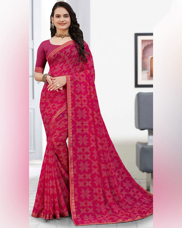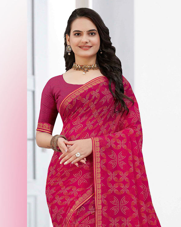 Vishal Prints Rani Printed Patterned Chiffon Saree With Foil Print And Fancy Border