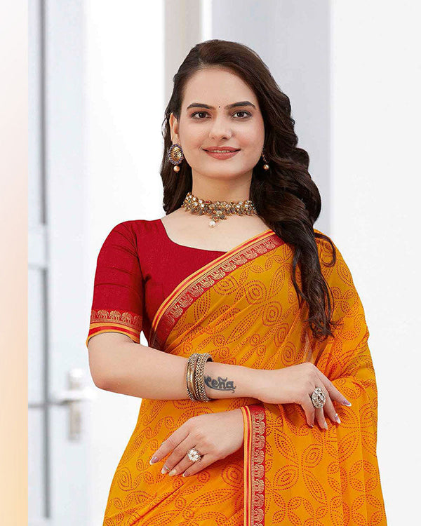 Vishal Prints Dark Mustard Printed Patterned Georgette Saree With Fancy Border