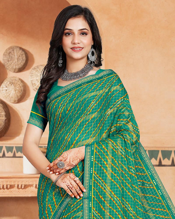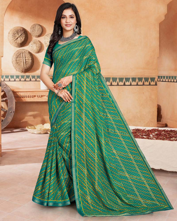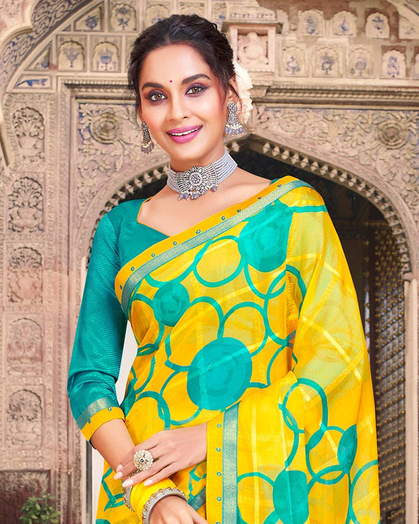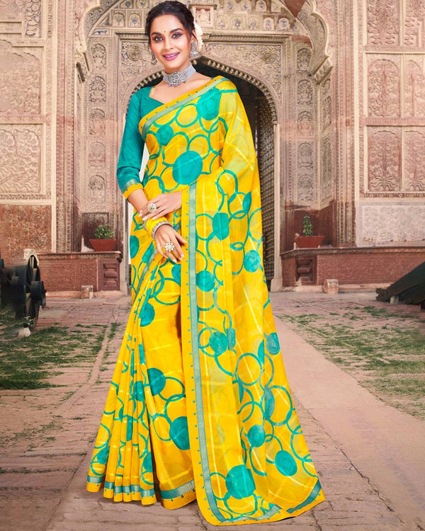 Vishal Prints Lime Yellow Printed Georgette Saree With Fancy Border