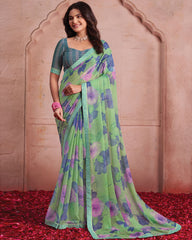 Vishal Prints Pistachio Green Printed Patterned Chiffon Saree With Fancy Border