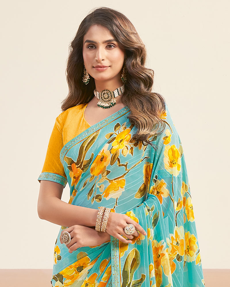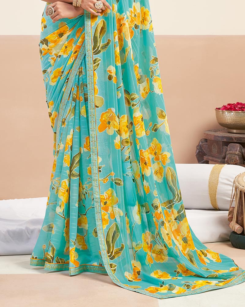 Vishal Prints Sea Green Printed Patterned Georgette Digital Print Saree With Fancy Border