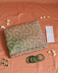 Pale Brown And Lunar Green Designer Crushed Tissue Bandhani Print Saree With Diamond Work And Cut Work Border