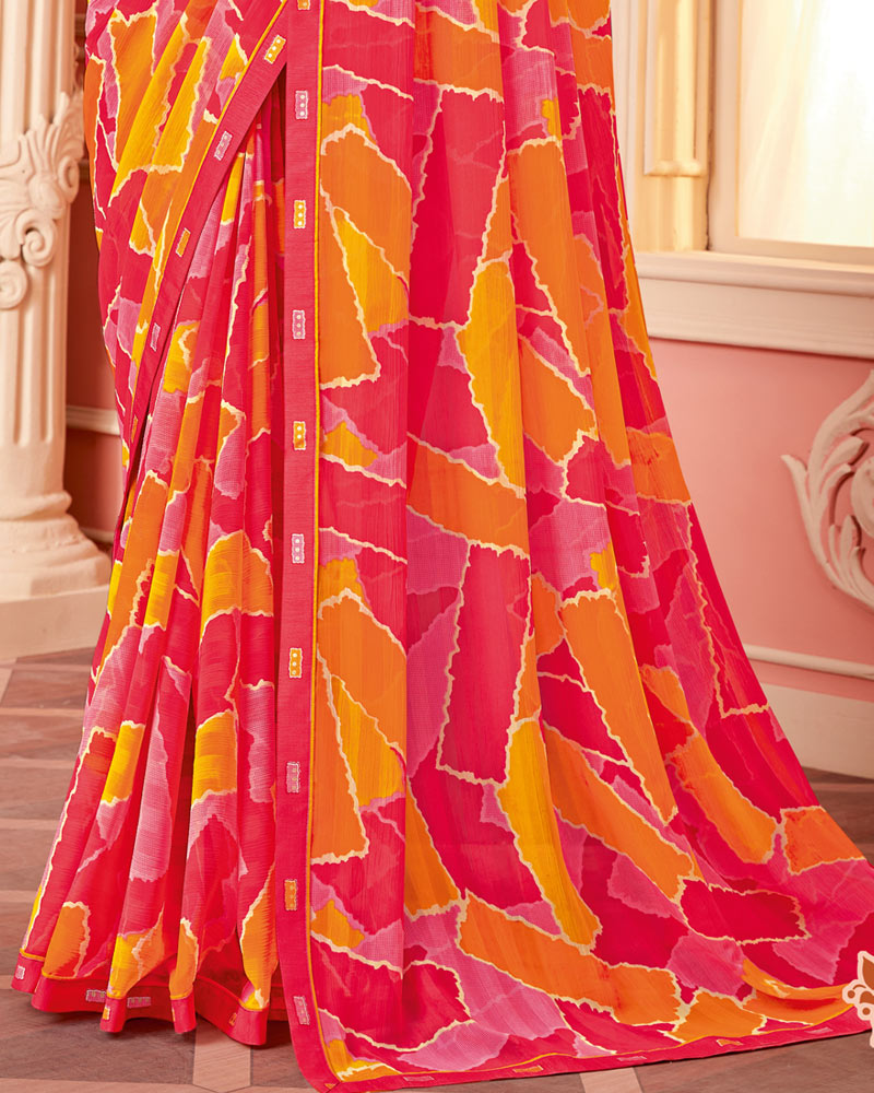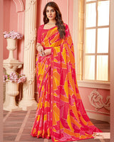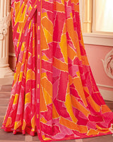 Vishal Prints Amaranth Pink Printed Chiffon Saree With Fancy Border