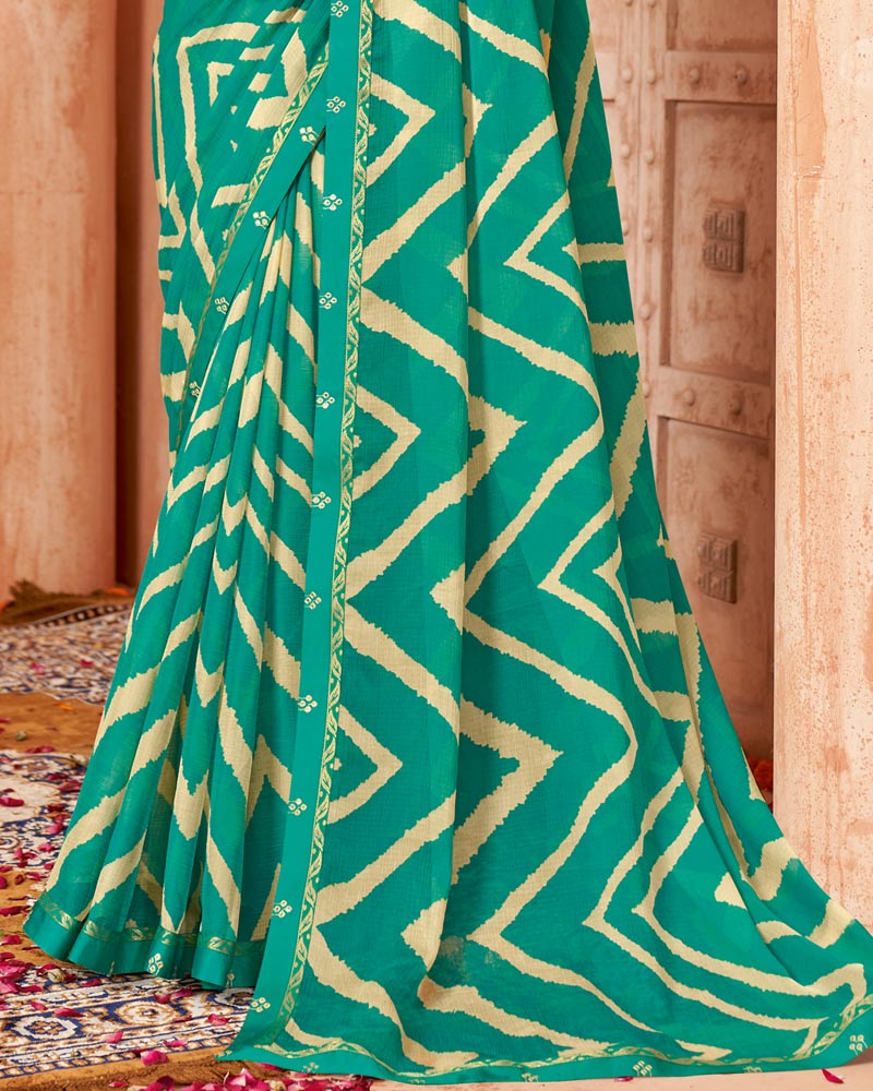Vishal Prints Aqua Green Printed Chiffon Saree With Fancy Border
