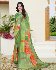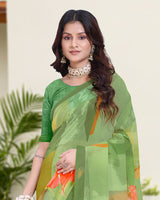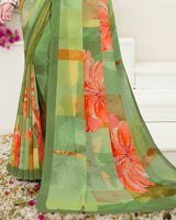 Vishal Prints Asparagus Green Digital Print Georgette Saree