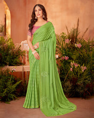 Vishal Prints Avocado Green Designer Fancy Chiffon Saree With Embroidery And Diamond Work