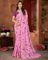 Vishal Prints Baby Pink Printed Georgette Saree With Fancy Border
