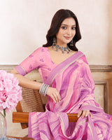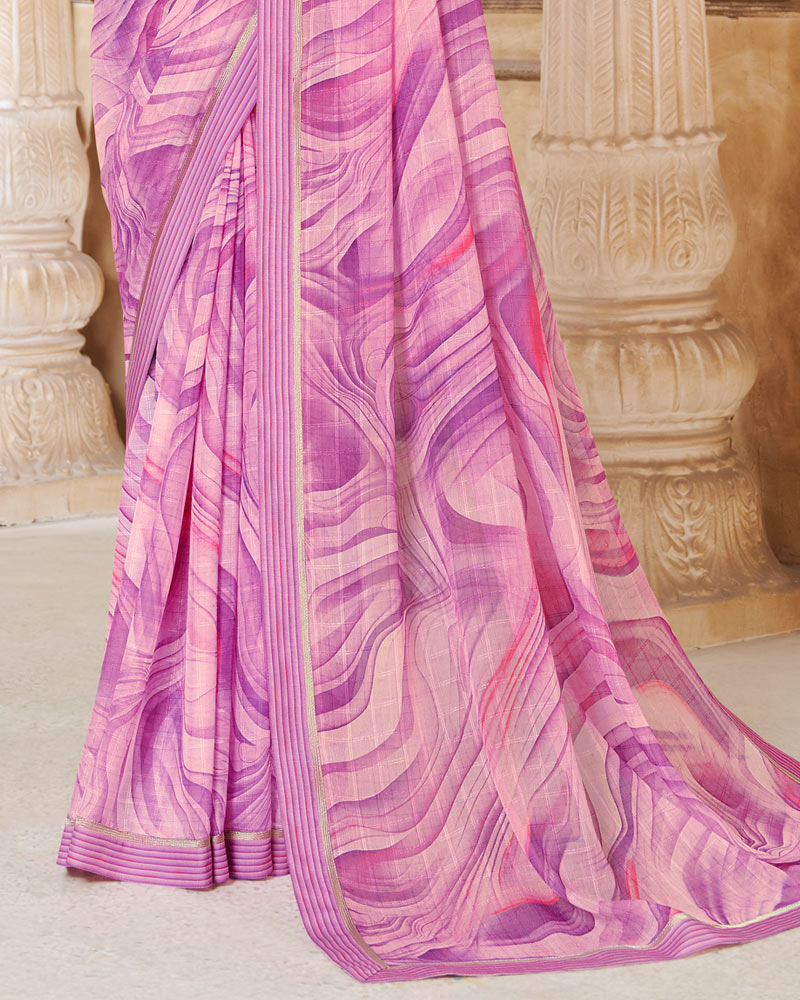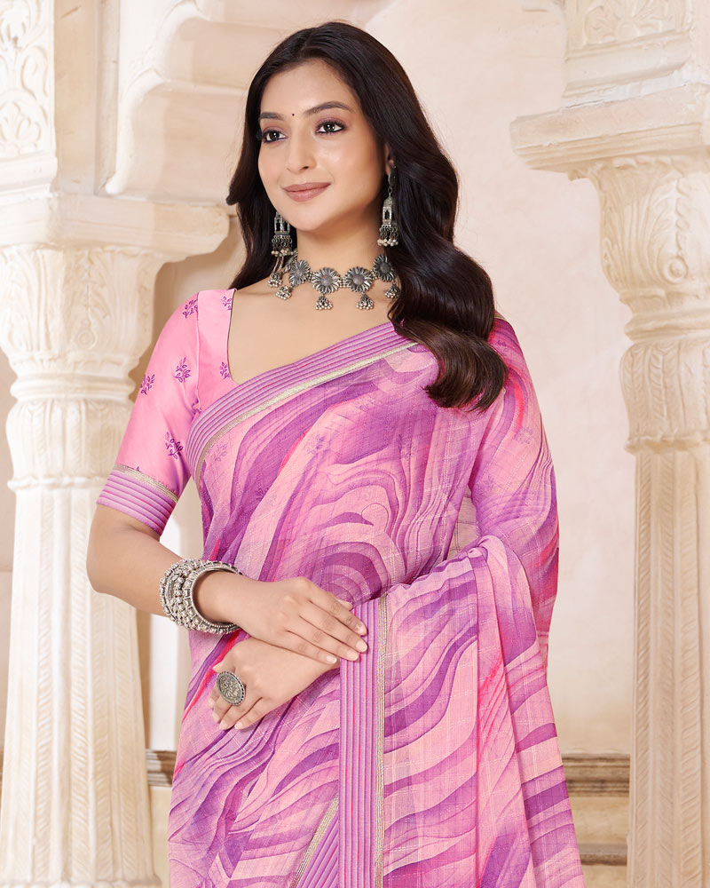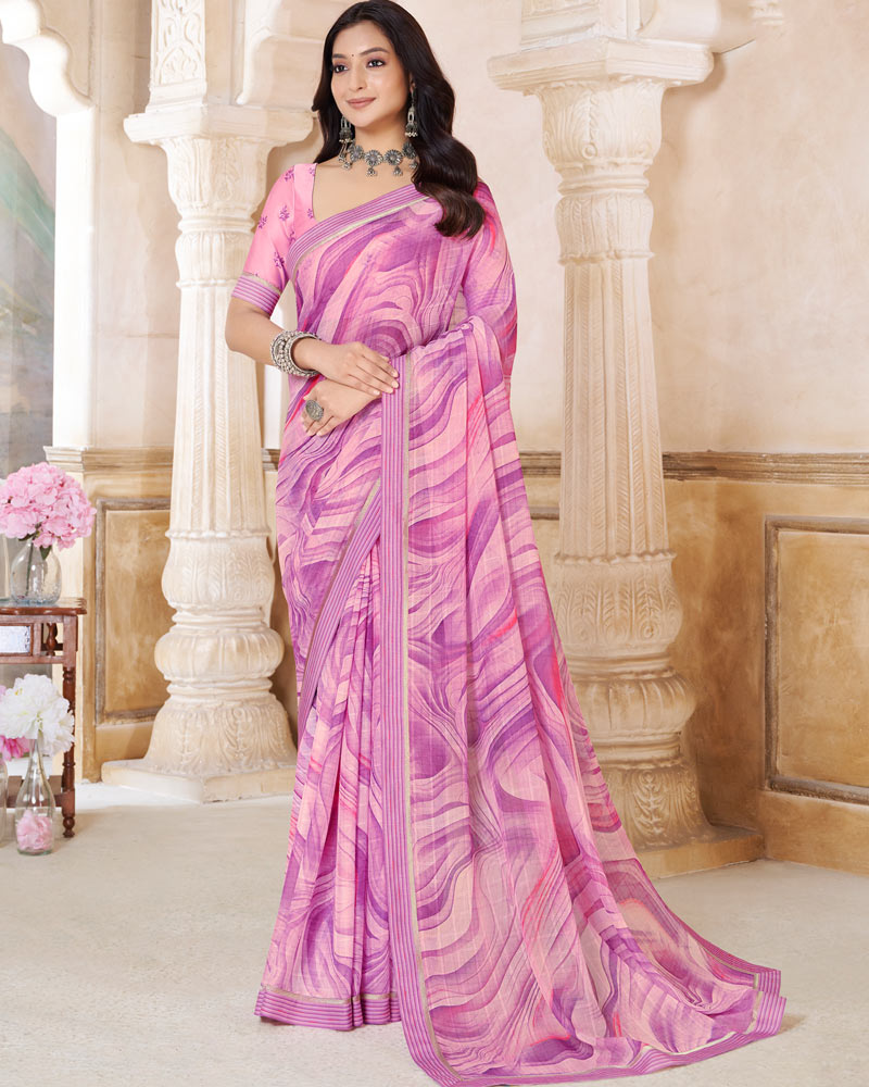 Vishal Prints Baby Pink Printed Patterned Georgette Saree With Fancy Border