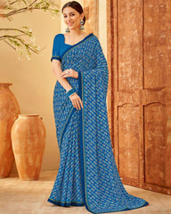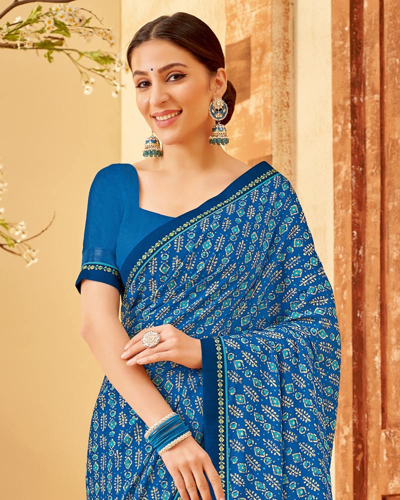 Vishal Prints Bahama Blue Printed Criva Crepe Saree With Fancy Border