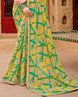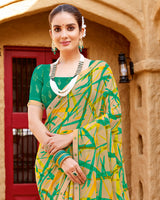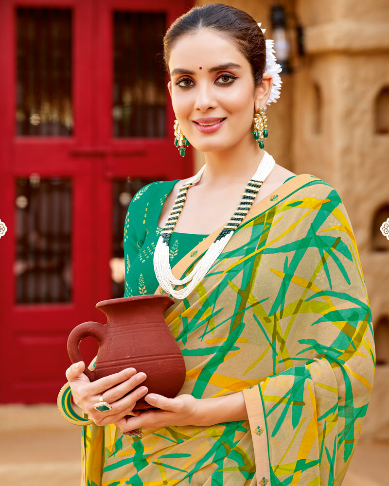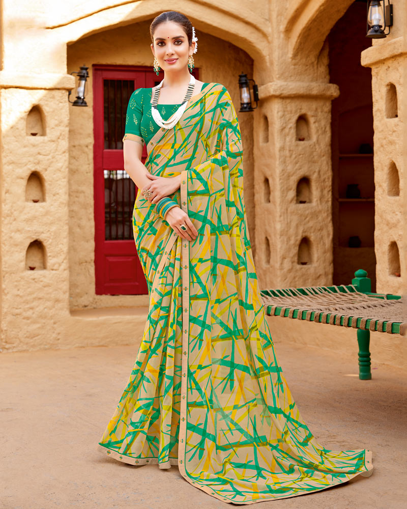 Vishal Prints Beige Green Printed Georgette Saree With Fancy Border