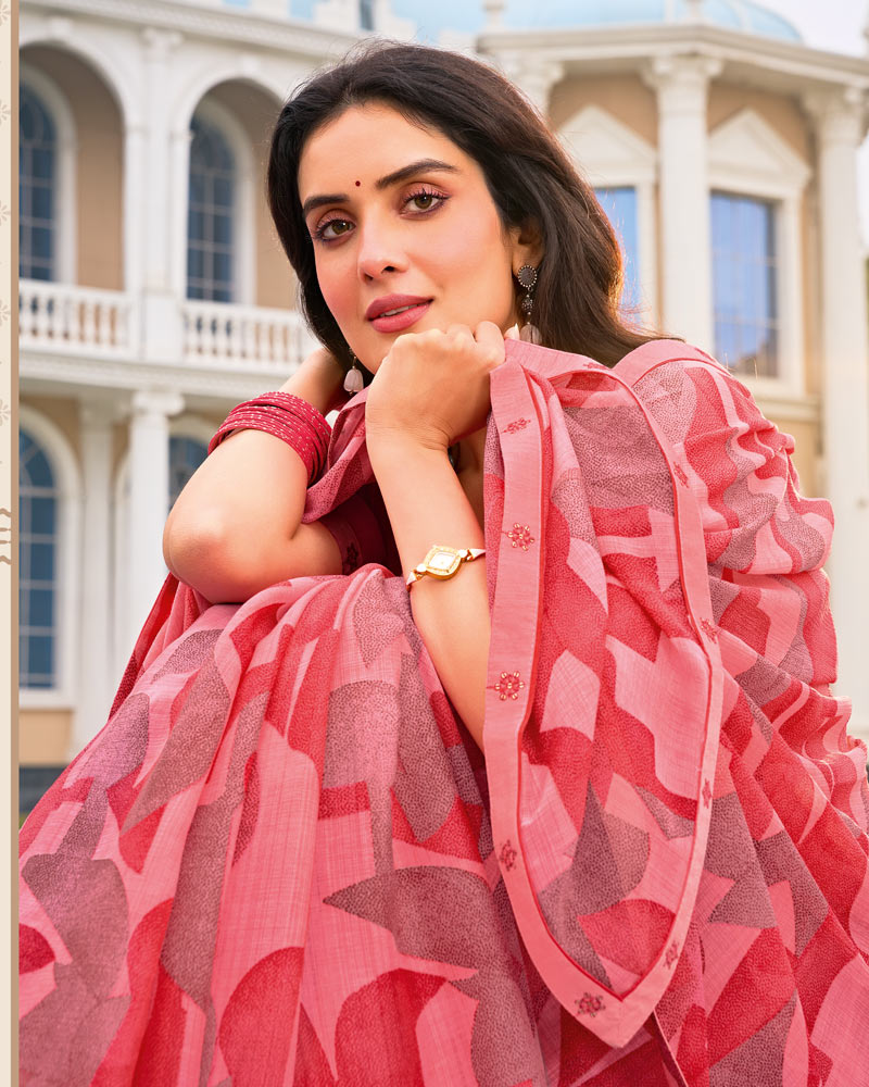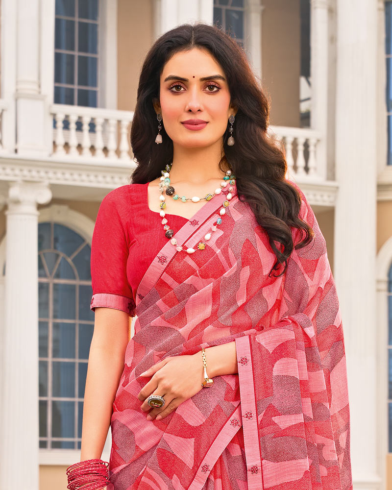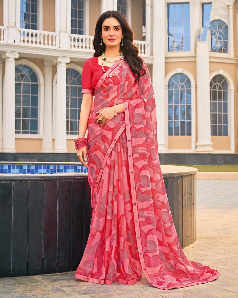Vishal Prints Berry Red And Pink Printed Fancy Chiffon Saree With Fancy Border