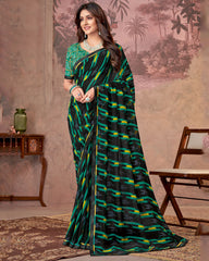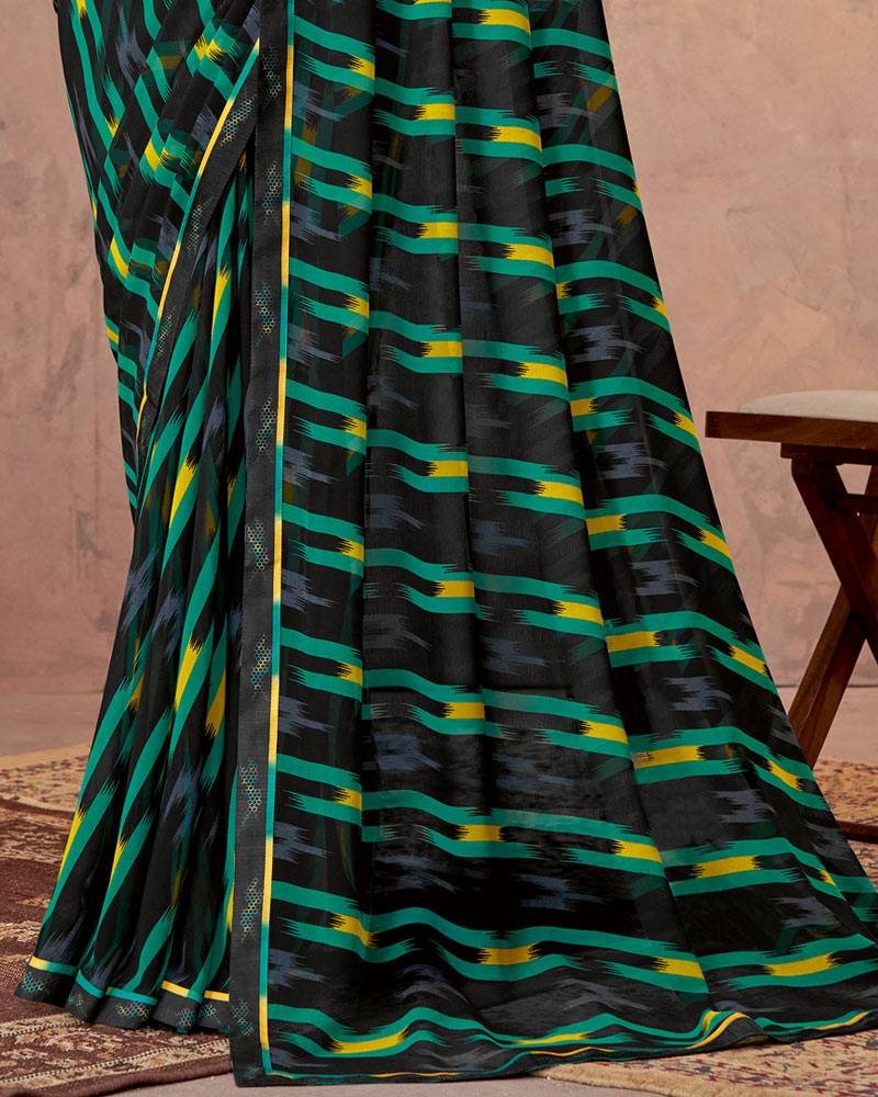 Vishal Prints Black And Mint Green Printed Georgette Saree With Fancy Border