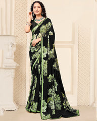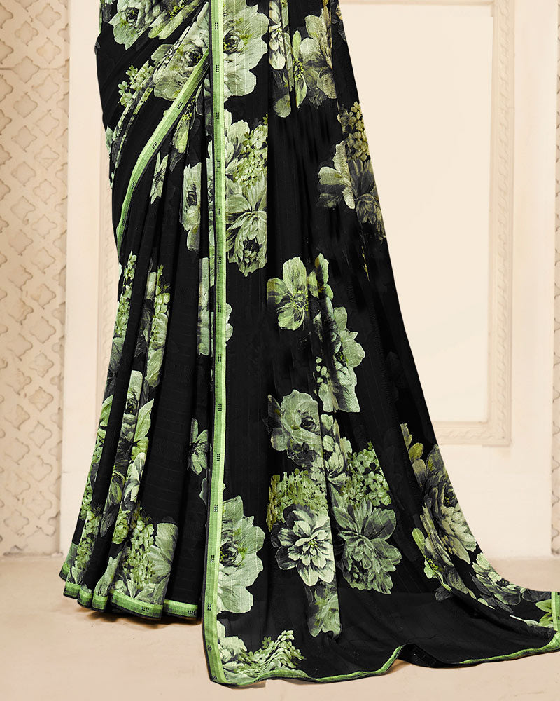 Vishal Prints Black And Moss Green Digital Print Patterned Georgette Saree With Fancy Border