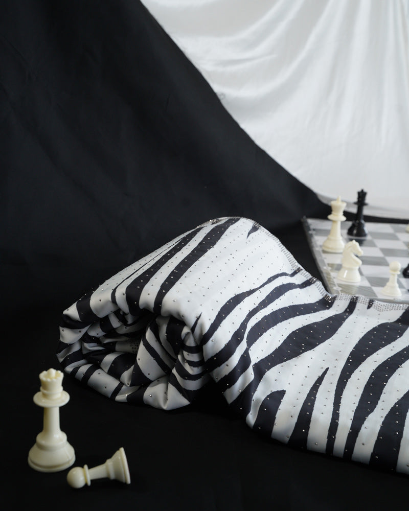 Vishal Prints Black And White Fancy Satin Digital Print Saree With Diamond Work And Cut Work Border