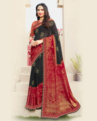 Vishal Prints Black Brasso Saree With Foil Print And Border