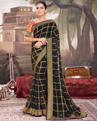 Vishal Prints Black Chiffon Saree With Stone Work And Zari Border