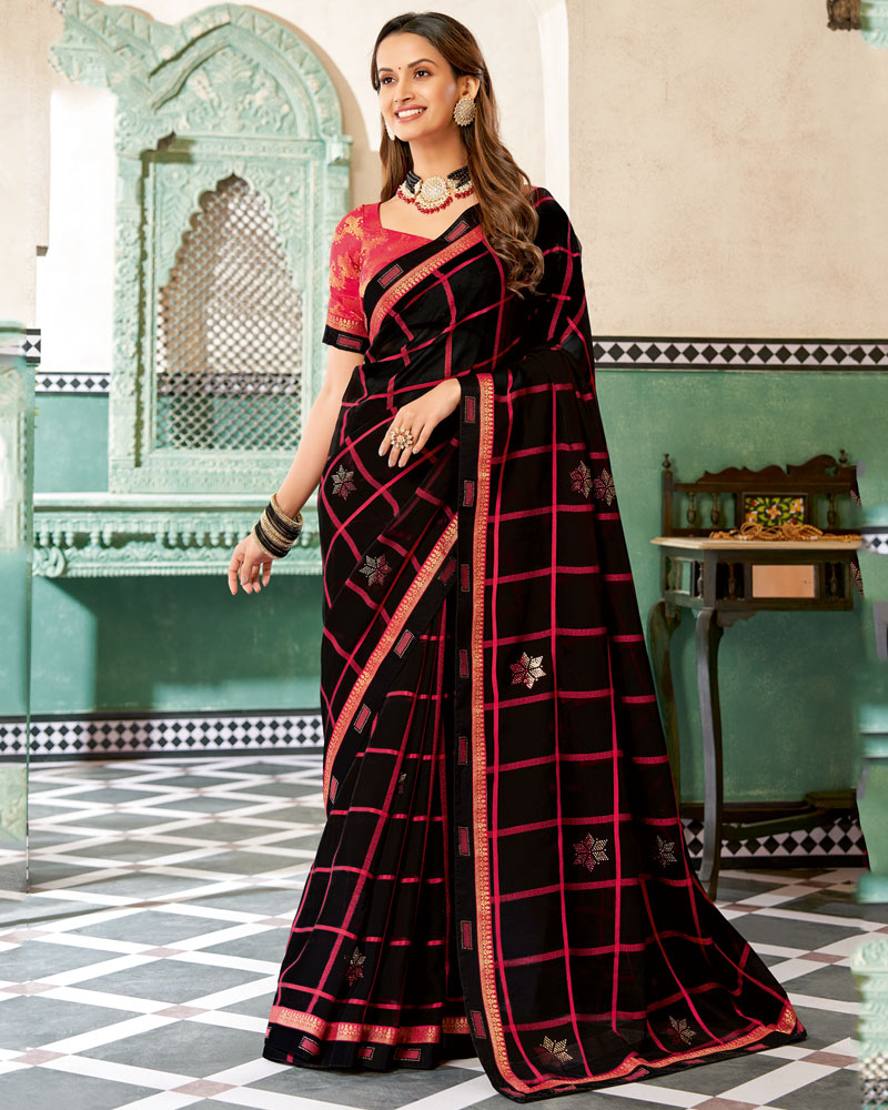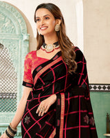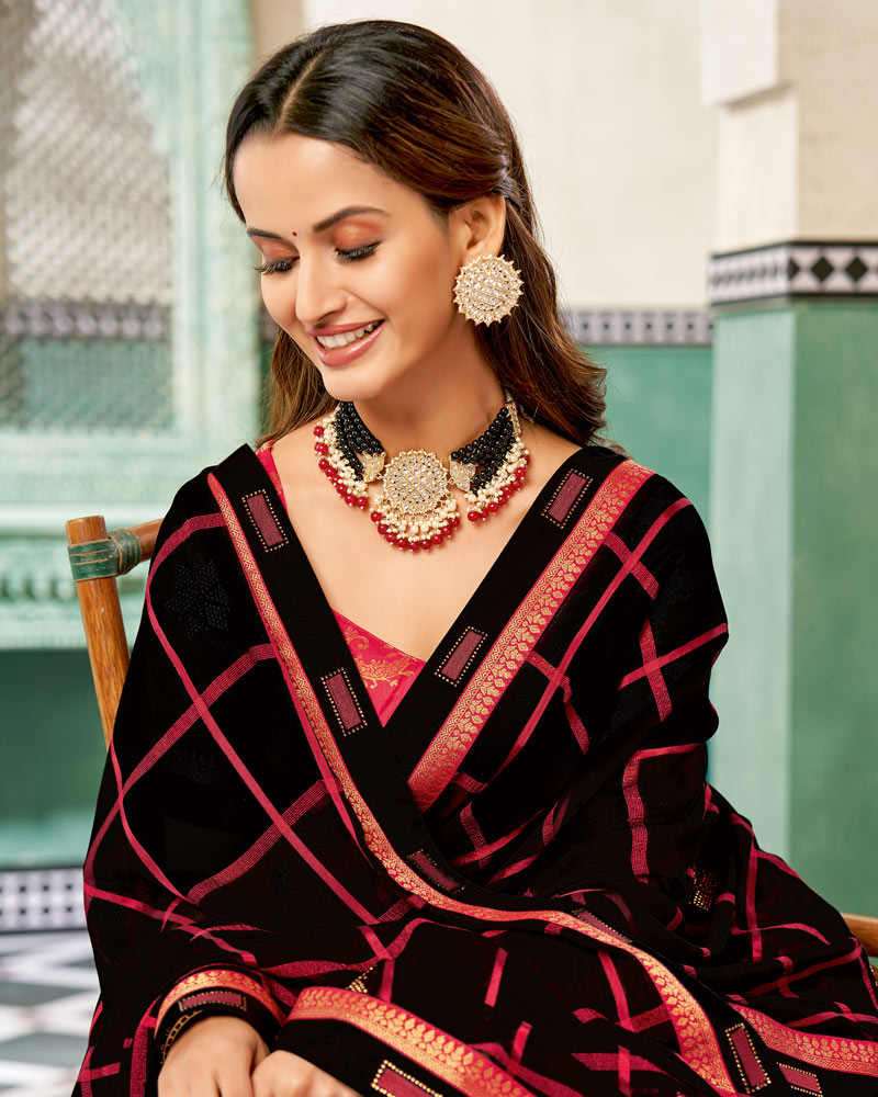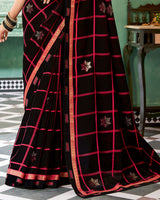 Vishal Prints Black Designer Fancy Chiffon Saree With Diamond Work And Fancy Border