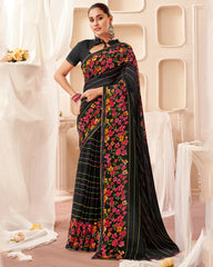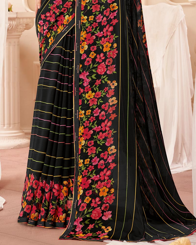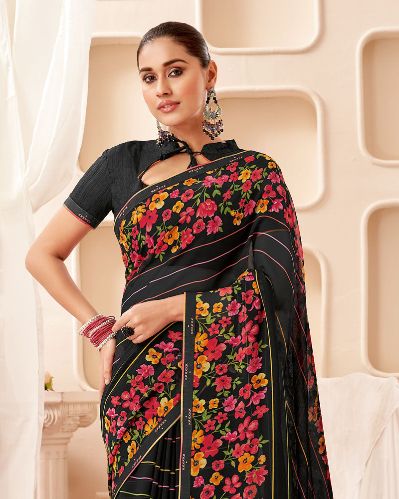 Vishal Prints Black Printed Georgette Saree With Fancy Border