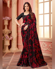 Vishal Prints Black Printed Georgette Saree With Fancy Border