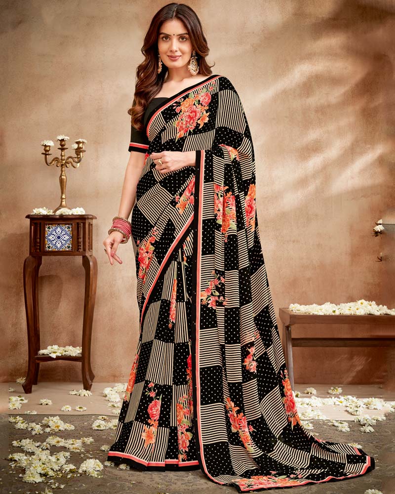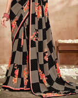 Vishal Prints Black Printed Patterned Georgette Saree With Fancy Border