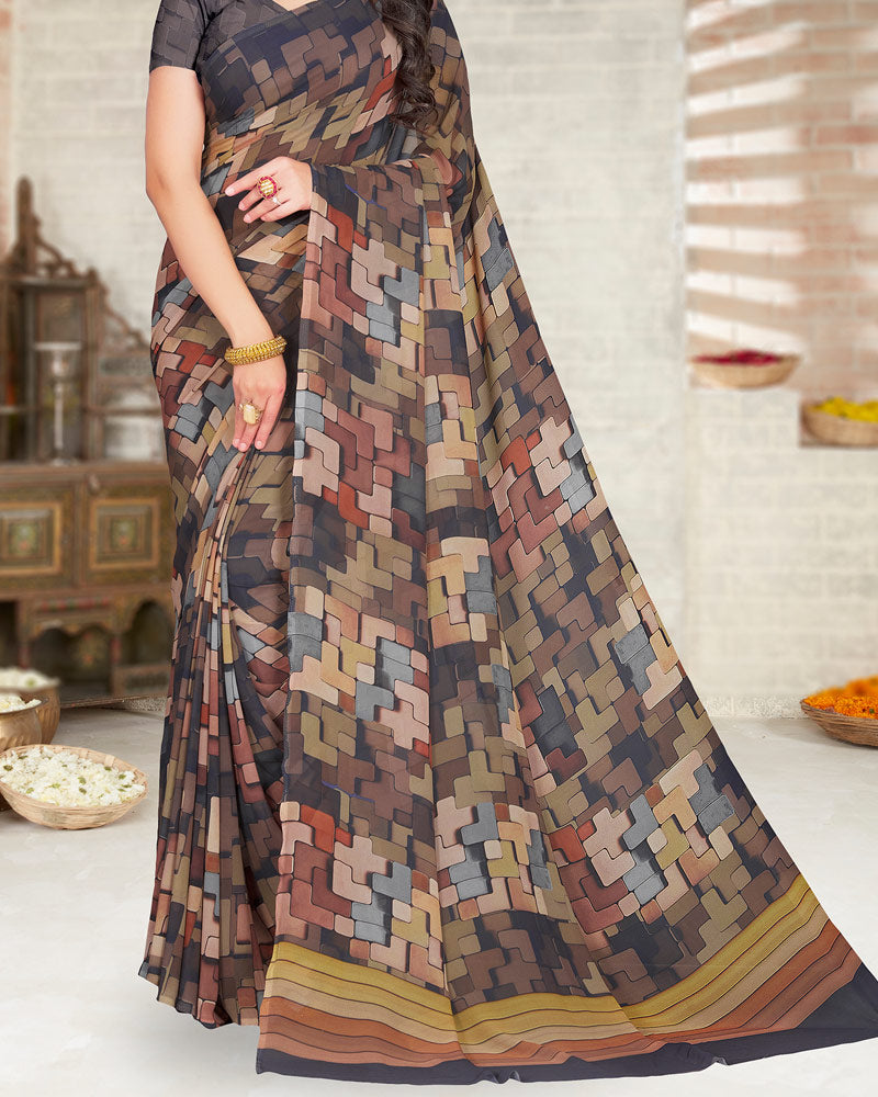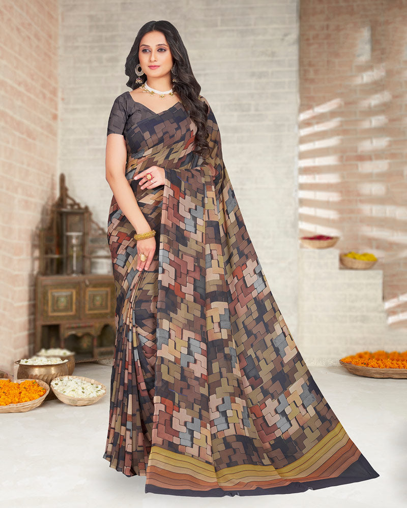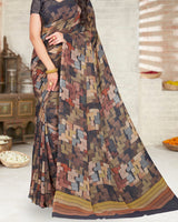 Vishal Prints Bluish Purple Digital Print Weightless Georgette Saree