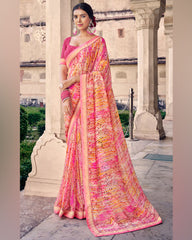 Vishal Prints Blush Pink Digital Print Georgette Saree With Fancy Border