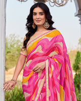 Vishal Prints Blush Pink Printed Patterned Georgette Saree With Fancy Border