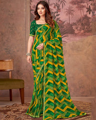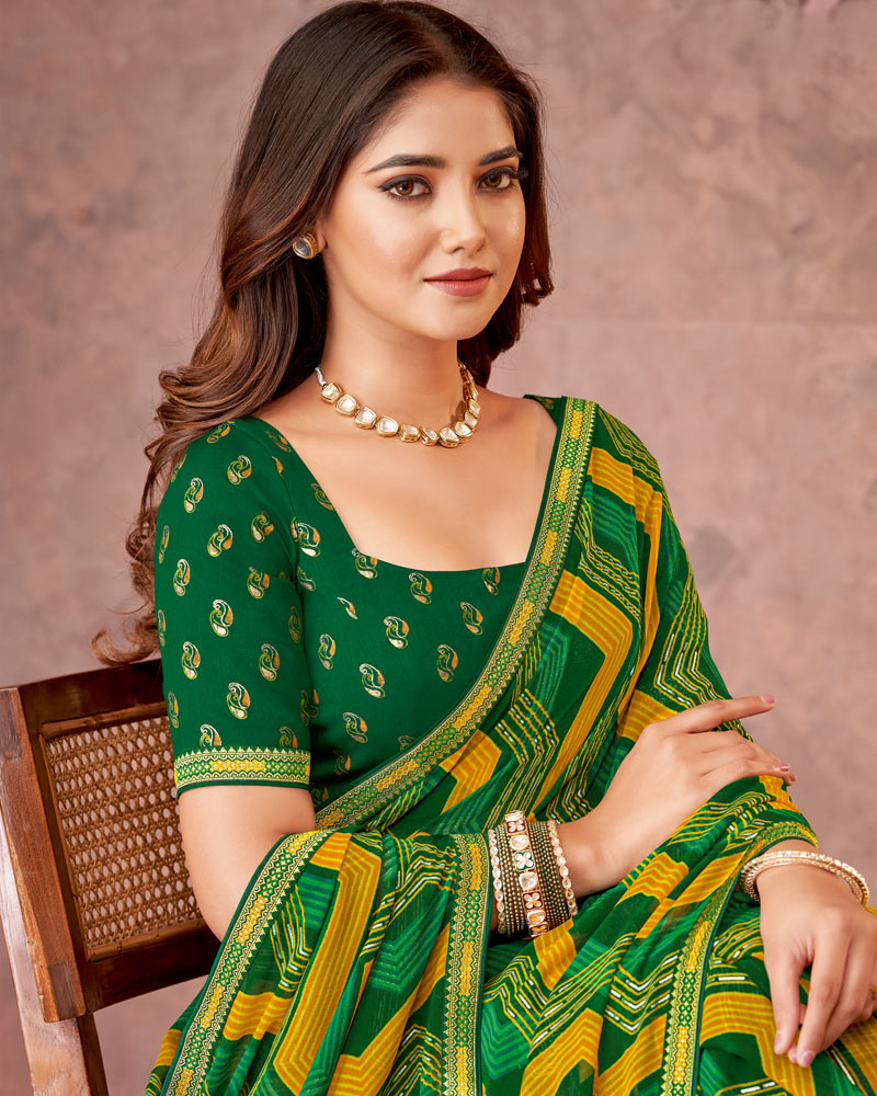 Vishal Prints Bottle Green Printed Georgette Saree With Foil Print And Zari Border