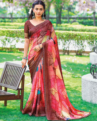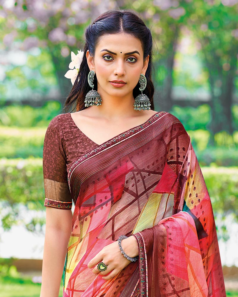 Vishal Prints Brown Printed Fancy Chiffon Saree With Border