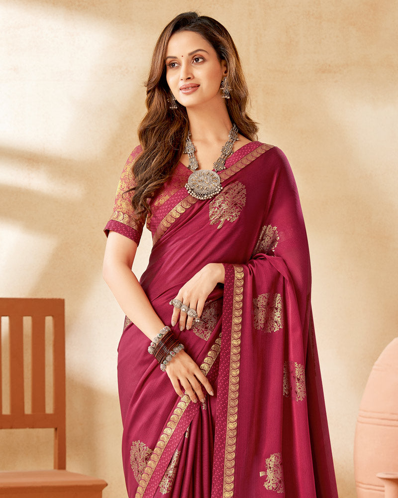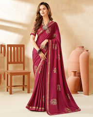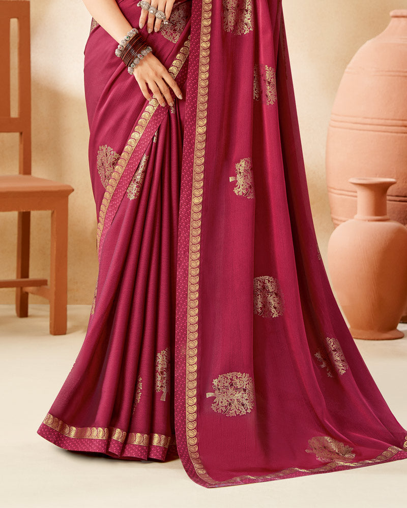 Vishal Prints Burgundy Designer Chiffon Saree With Foil Print And Diamond Work
