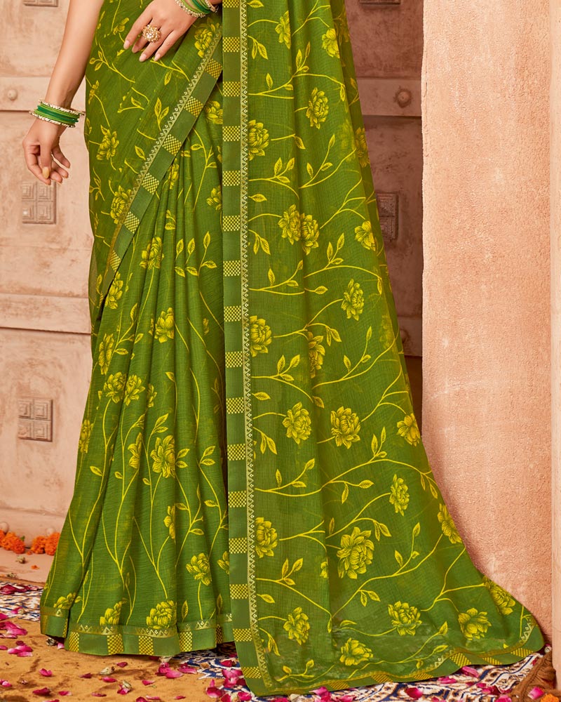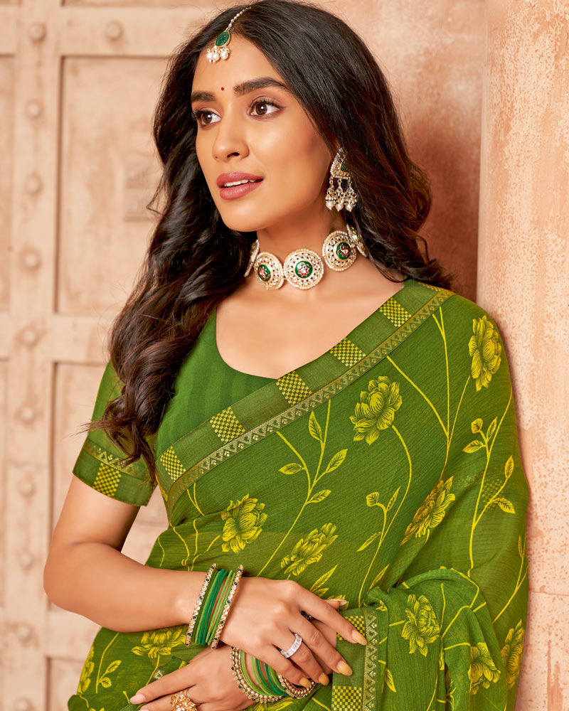 Vishal Prints Burgundy Printed Chiffon Saree With Fancy Border