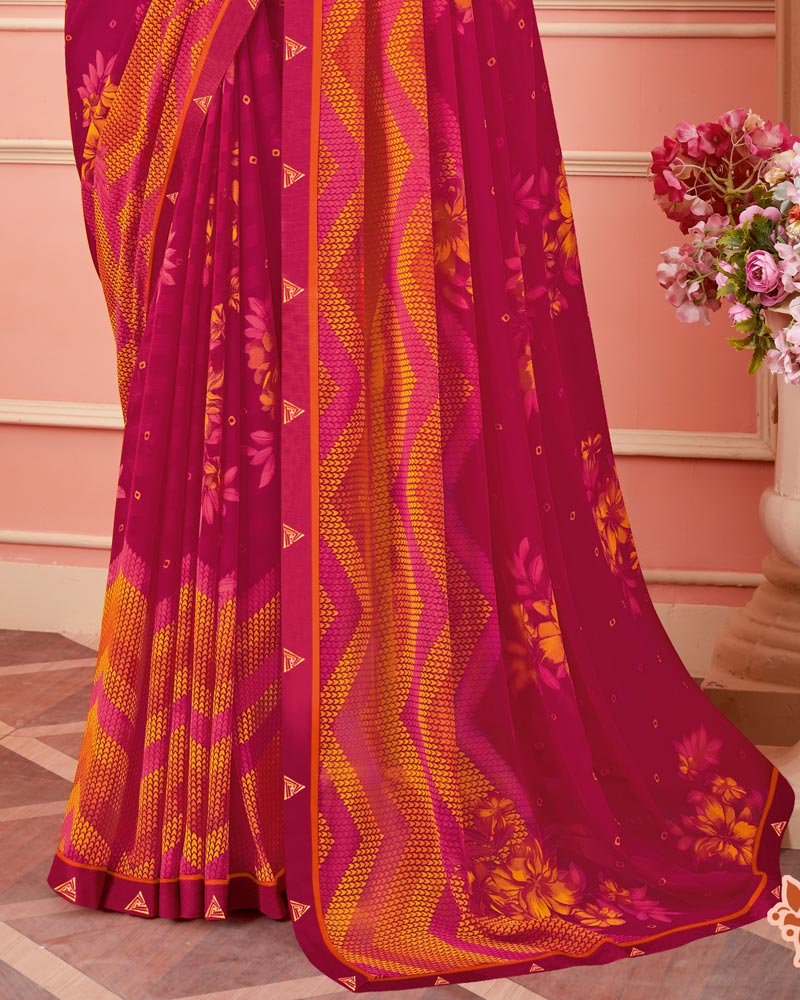 Vishal Prints Cardinal Pink Printed Chiffon Saree With Fancy Border