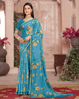 Vishal Prints Celestial Blue Digital Print Criva Crepe Saree With Weaved Viscose Border