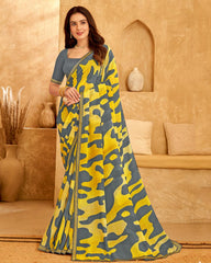 Vishal Prints Charcoal Grey Printed Georgette Saree With Fancy Border