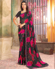 Vishal Prints Charcoal Grey Printed Georgette Saree With Fancy Border