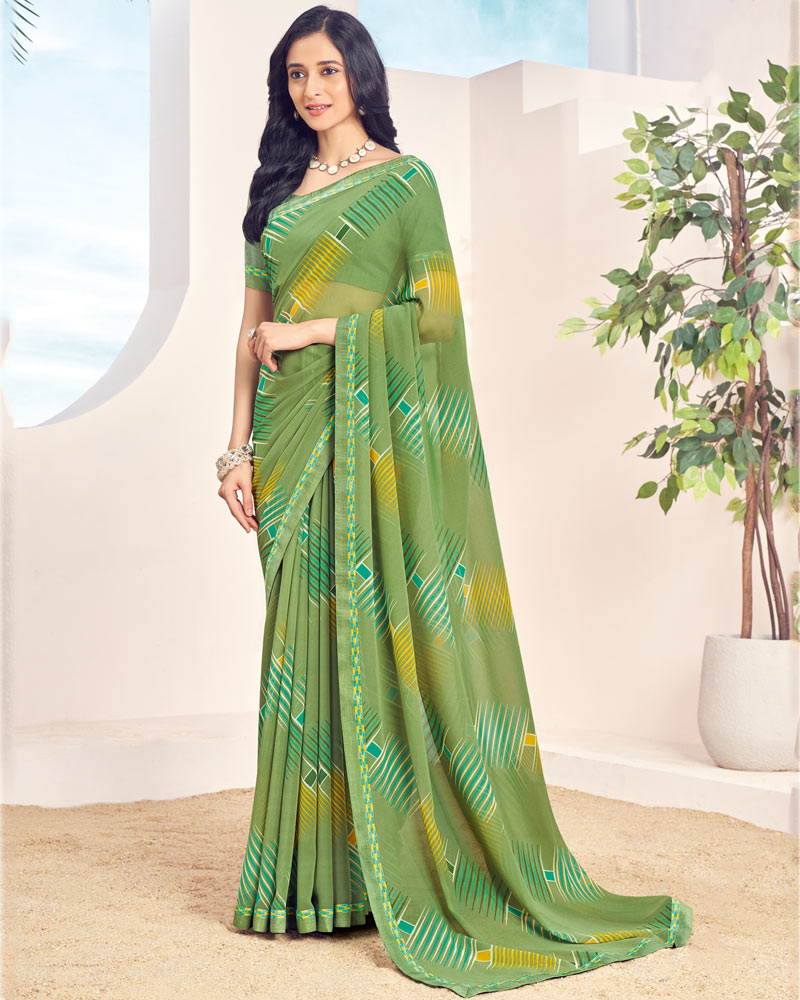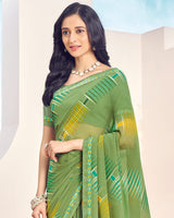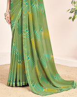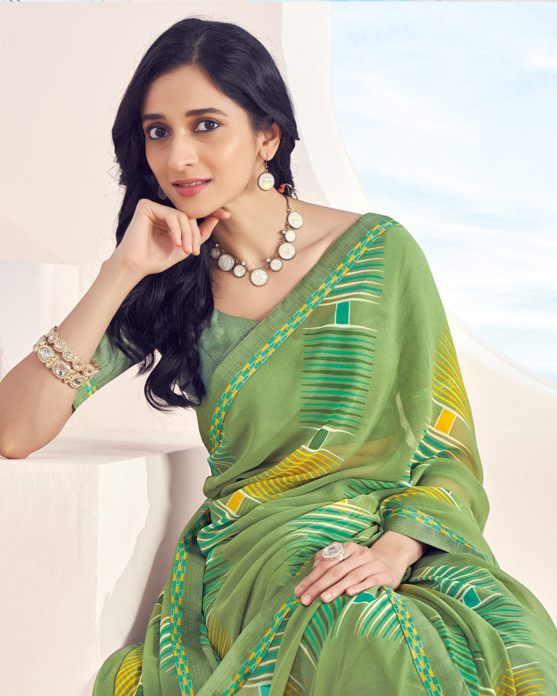 Vishal Prints Chelsea Cucumber Green Printed Georgette Saree With Fancy Border