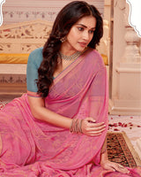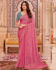 Vishal Prints Cherry Pink Designer Brasso Saree With Zari Border