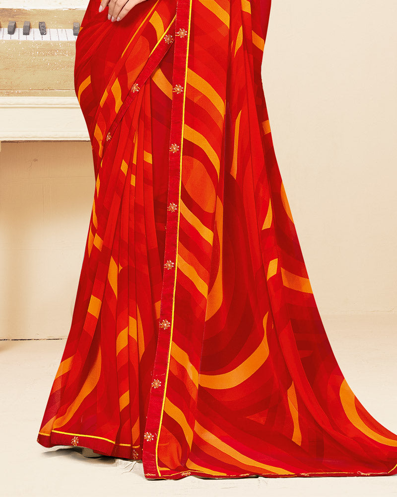 Vishal Prints Chili Red Printed Georgette Saree With Fancy Border
