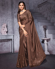 Vishal Prints Coffee Satin Saree With Stone-Diamond Work