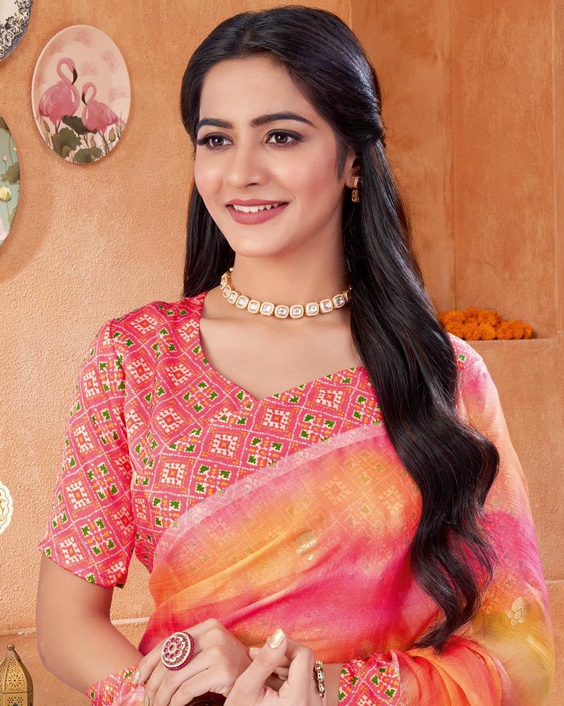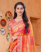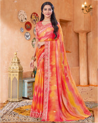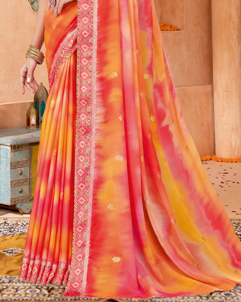 Vishal Prints Coral Digital Print Chiffon Saree With Foil Print And Weaved Satin Patta