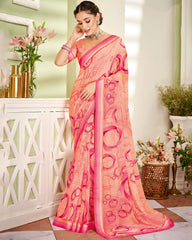 Vishal Prints Coral Pink Printed Georgette Saree With Fancy Border