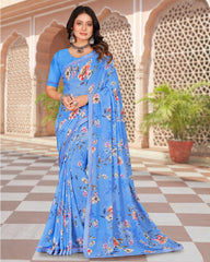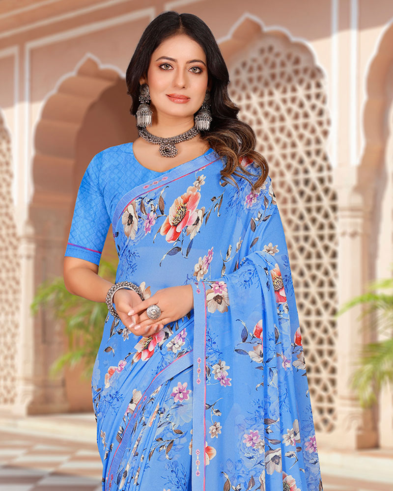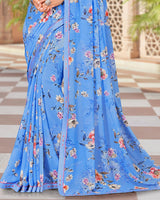 Vishal Prints Crystal Blue Digital Print Georgette Saree With Fancy Border