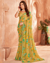 Vishal Prints Dark Beige Printed Georgette Saree With Fancy Border